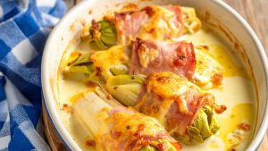 Chicorée überbacken ist ein klassisches Ofengericht für die kalte Jahreszeit. Zart gegartes Wintergemüse, kombiniert mit Schinken und cremiger Käsesauce, ergibt eine herzhafte Mahlzeit mit feiner Bitterkeit und viel Geschmack.