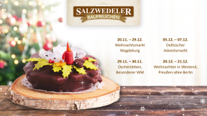 Genießen Sie den einzigartigen Salzwedeler Baumkuchen von IHR LANDBÄCKER. Besuchen Sie uns auf den Weihnachtsmärkten und lassen Sie sich von dieser handwerklichen Köstlichkeit verzaubern!